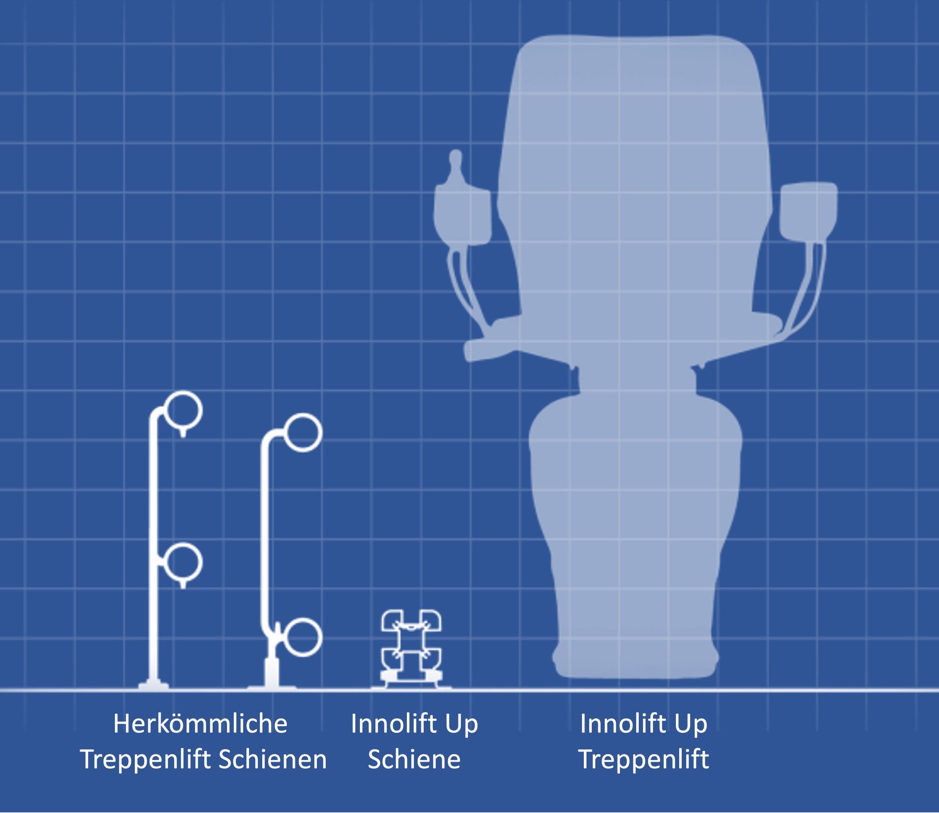 Das einzigartige und patentierte Schienensystem des UP Treppenliftes aus hochfestem Aluminium ist äußerst platzsparend, robust und durch die ausgeklügelte Konstruktion extrem schnell lieferbar.