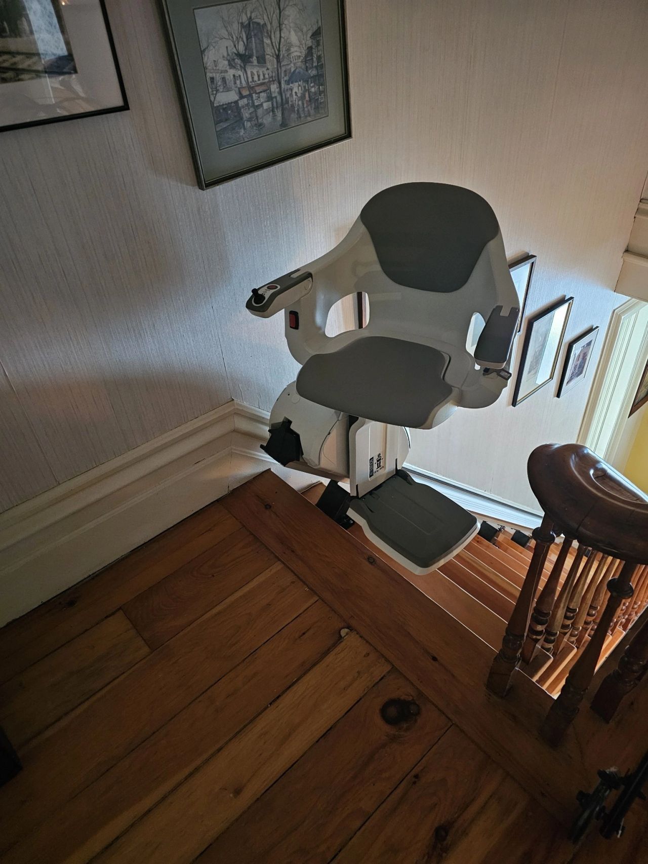 In dieser zusammengeklappten Position benötigt der Treppenlift nur noch 38 cm!