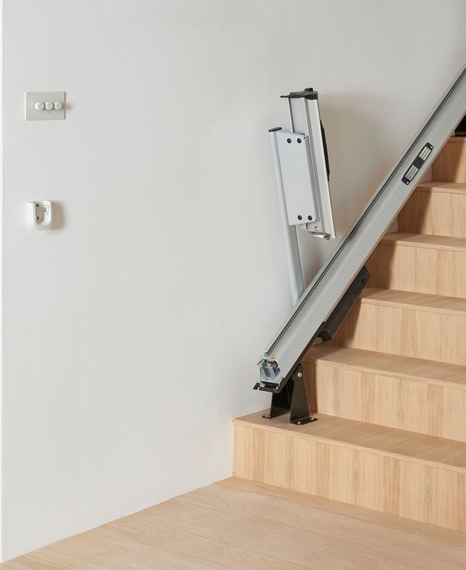 In diesem Fall klappt die Schiene am Start automatisch hoch und der Platz vor der Treppe ist komplett frei. Sobald der Lift benutzt wird, klappt die Schiene automatisch wieder nach unten.