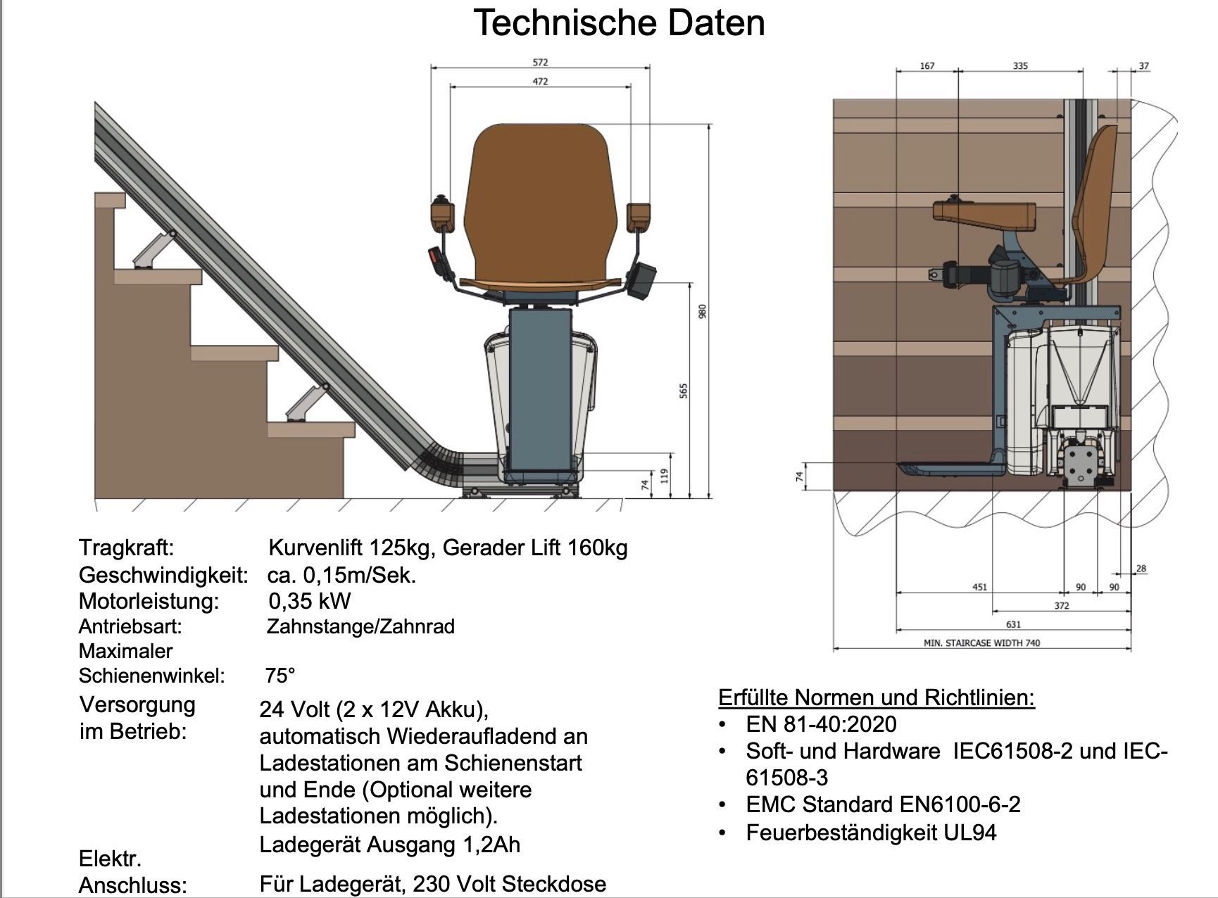Der Preis eines Treppenliftes ist stark von Ihren Anforderungen, der eventuellen zusätzlichen Ausstattung, der Schienenlänge und des Schienenverlaufes abhängig.